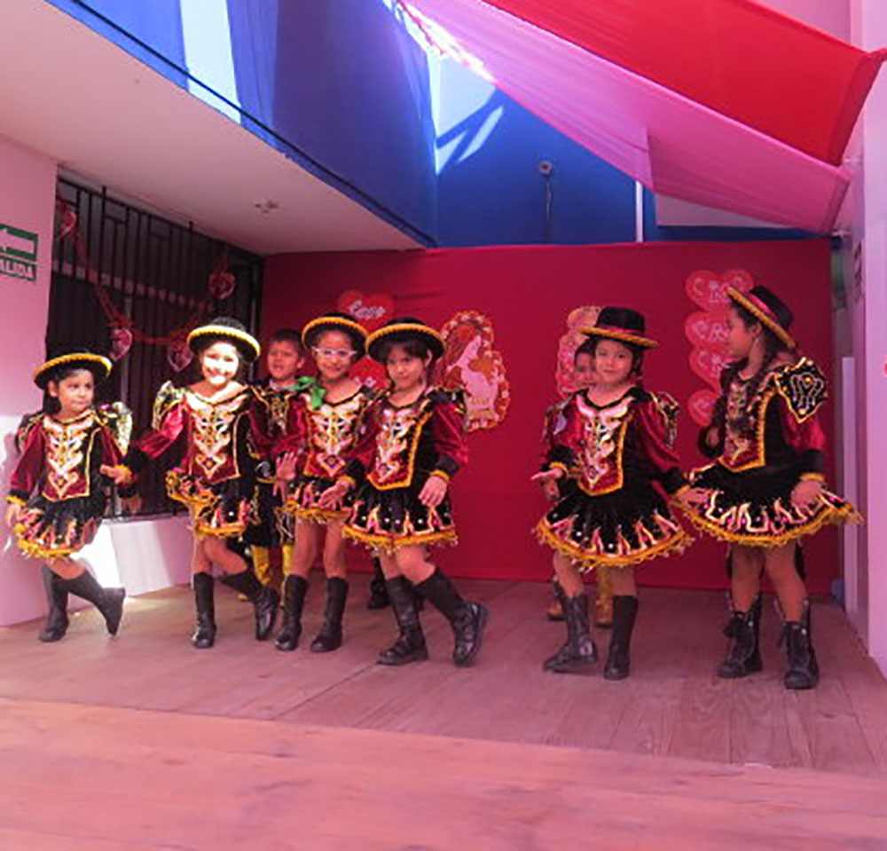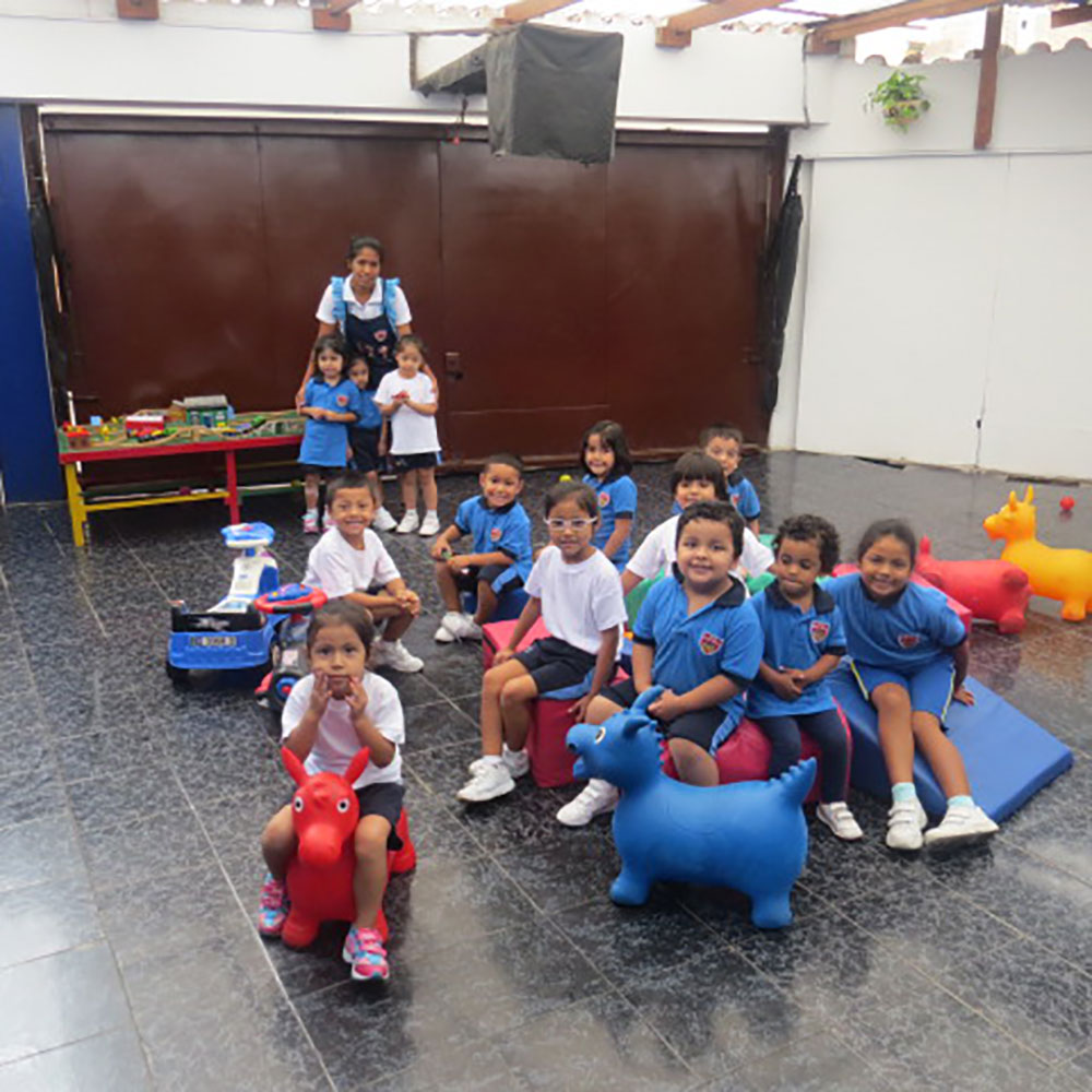 Nuestro ambiente educativo está adaptado a las necesidades e intereses de niños de 3, 4 y 5 años y está implementado con materiales muy estimulantes y variados que les permitan un trabajo integral en las diferentes áreas de desarrollo. Contamos con un patio exclusivo para el nivel , ambiente para folklore , Laboratorio con Computadoras , aula con televisor, dvd.